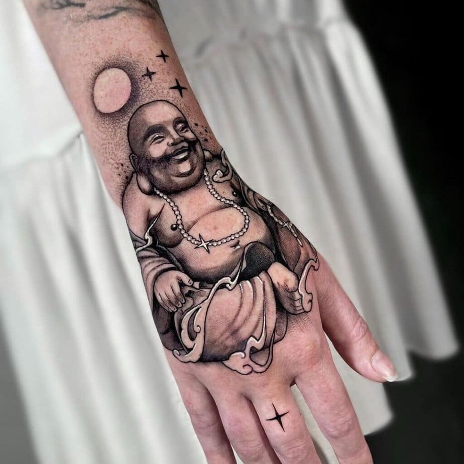Hand tattoos are bold in their visibility. A minimalist Buddha on the hand quietly announces your dedication and values without being loud. It’s small but meaningful, and people notice it in subtle, thoughtful ways.