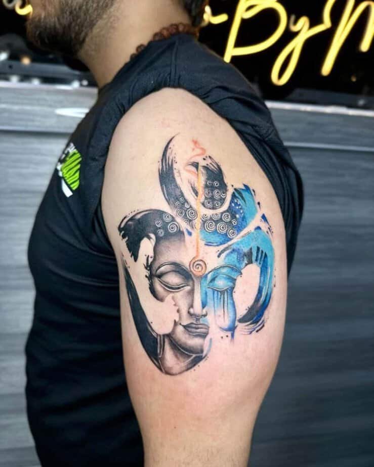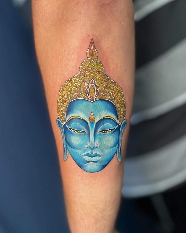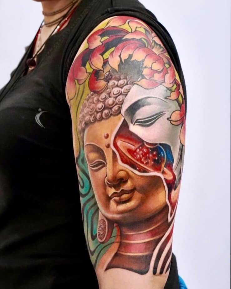 6. A colorful Buddha on the upper arm if you love vibrancy