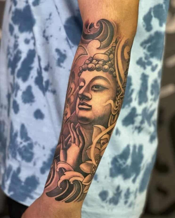Lotus flowers, mandalas, and ornamental accents feel like natural companions for Buddha imagery. If you want a design that reads spiritual and elegant, adding a lotus on the forearm gives it softness and symbolism — purity rising from the mud, resilience, all that good stuff.