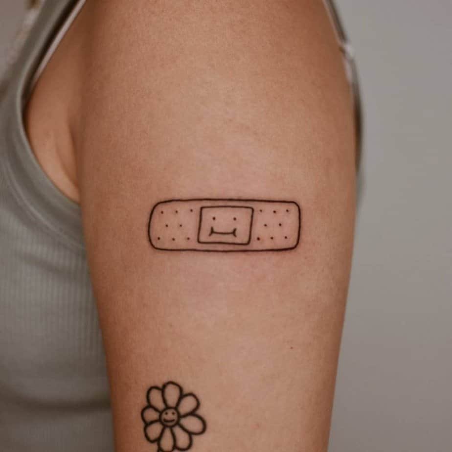 A sweet little smiling bandage that reads like a hug you can carry. It’s about healing — physical scrapes, emotional ones — and the way someone putting a bandage on you as a kid made everything feel okay for a minute. It’s playful but tender, a tiny emblem of care and getting better.