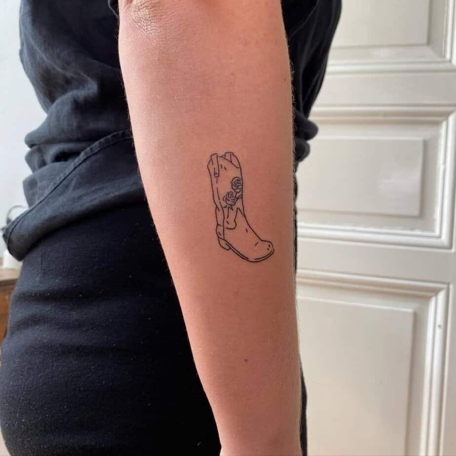 A forearm cowboy boot decked out in rose embroidery that somehow reads both feminine and fierce. It’s the kind of design that says you’re soft and strong at the same time — free-spirited but not to be messed with. Wear it as a little anthem to being unapologetically you.