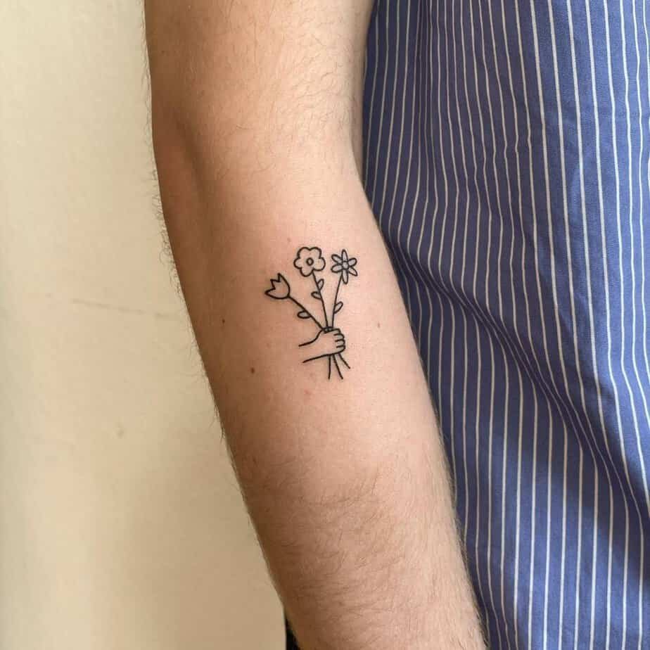 Holding flowers — a tiny love note on your forearm