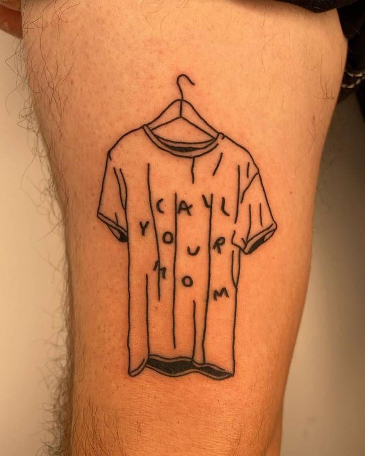 A wrinkled tee that says “call your mom” — and I laughed out loud because yes, that’s so real. You know those moments when you swear a shirt vanished forever and then mom finds it in two minutes flat? This is that bond in ink: equal parts poke and tribute to the wonder that is mom-skillz. It’s playful and oddly comforting.