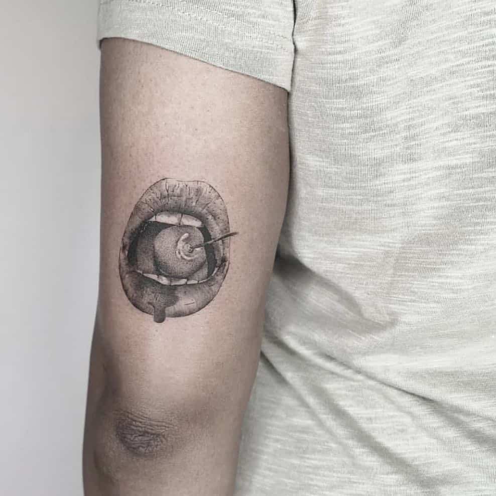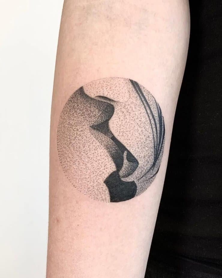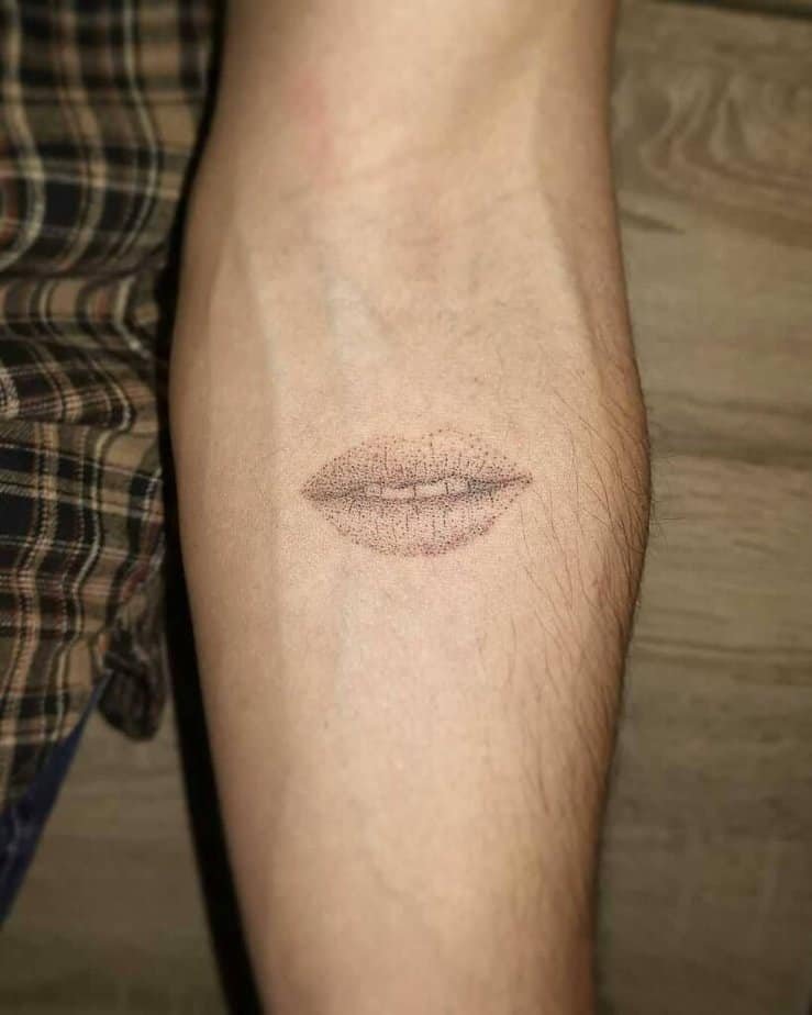 If you want something understated but still textured, faint lips with dotwork are so sweet. They whisper rather than shout — perfect for people who love the idea of symbolism without obvious flash.