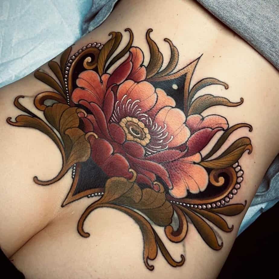 A big single flower in neo-traditional color does wonders on the lower back — it’s dramatic but still feels elegant. The lines and shading make it feel almost real, and you can choose a bloom with a symbolism that resonates with you. Big commitment, big payoff.