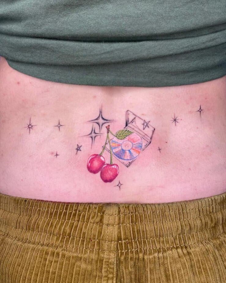 Cherries plus music is a tiny, vibrant combo — perfect if you love that wistful, vintage pop-star mood (hello, Lana Del Rey). The micro, lifelike colors make it feel playful and nostalgic at once. Whether you go bright and colorful or moody and gothic, there’s room for your own spin.