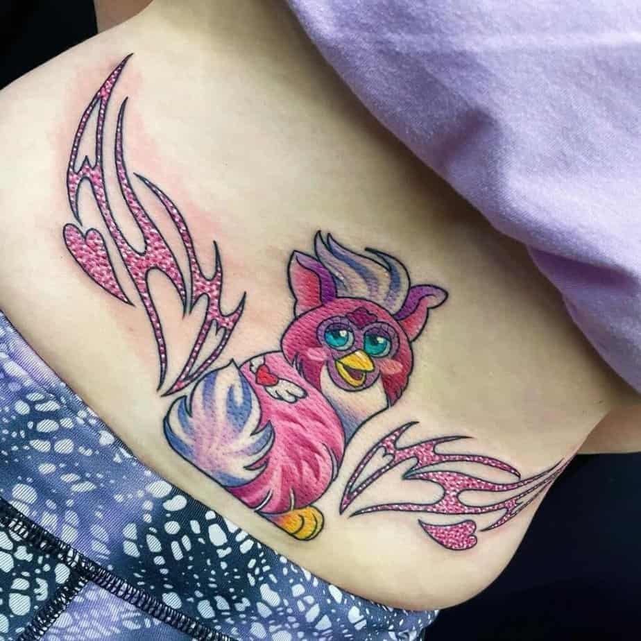 This one’s a grin-maker: bright, cartoon-y, and totally joyful. Fun fact — that little critter looks a lot like a Furby, the classic electronic toy, and that nostalgia just adds to the charm. Not into Furby? Swap it for any character you actually love. The cartoon style with bold colors is what sells the vibe here.