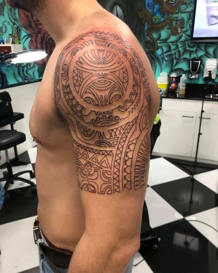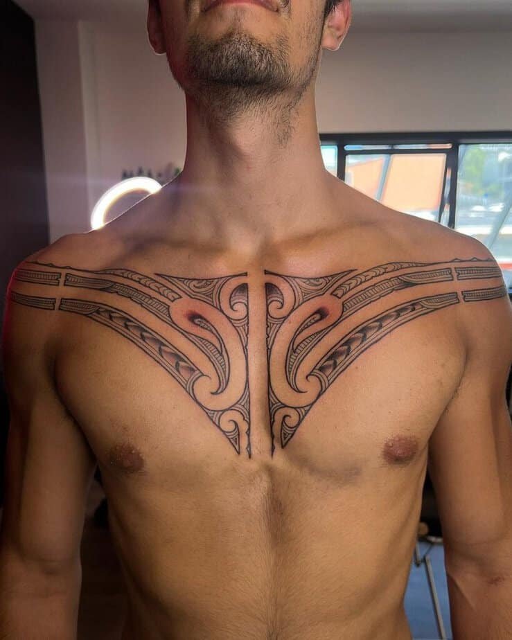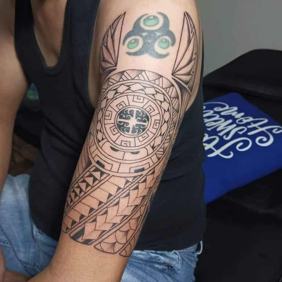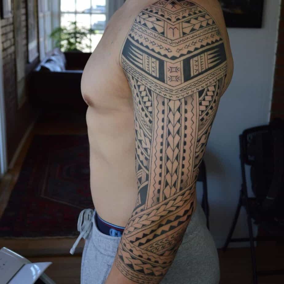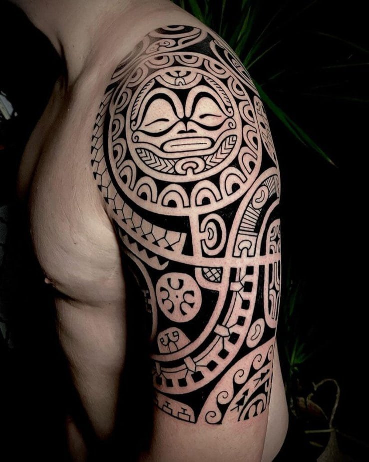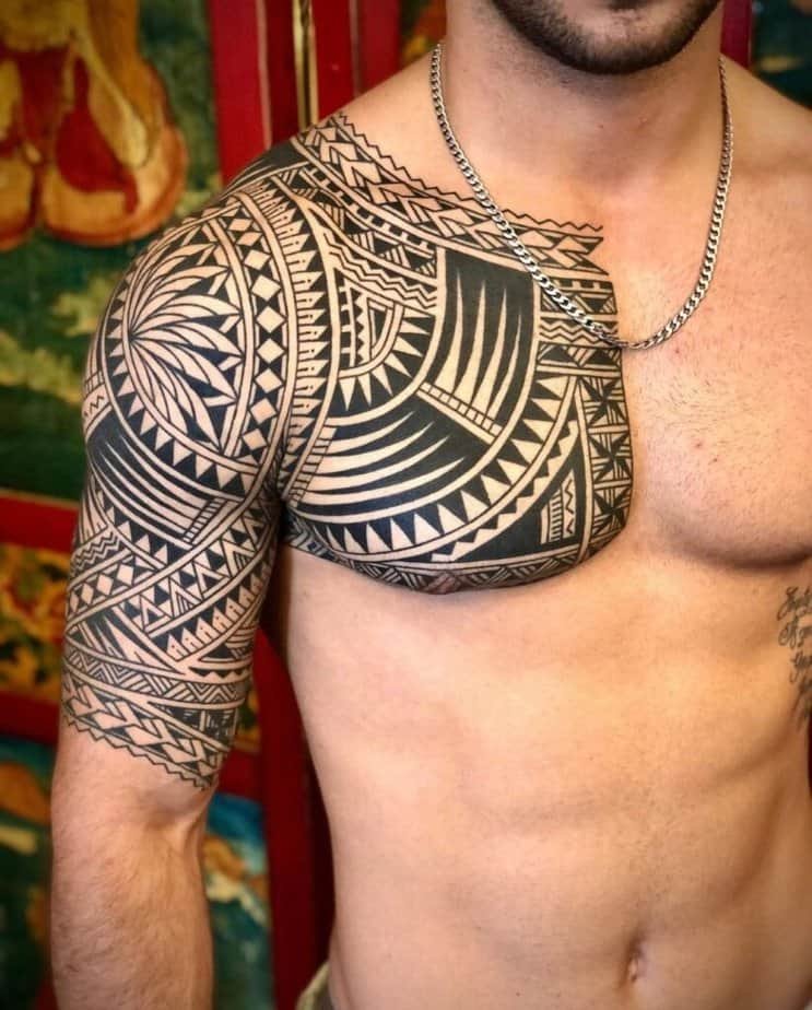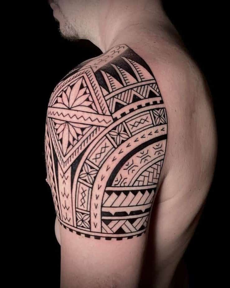 Samoan tattoos feel like architecture for the body — lots of geometry placed with mirror-like symmetry. If you lean toward structure and perfection, you’ll appreciate how these designs sit on the skin. First, there’s the solid-black repetition that gives a regal, ancestral vibe; then, you’ll see how a piece stretching from upper arm across shoulder and chest really reads as a statement and a sign of belonging; and lastly, if you love the look but don’t want a full sleeve, a partial wrap that leaves skin showing still grabs attention and starts conversations.