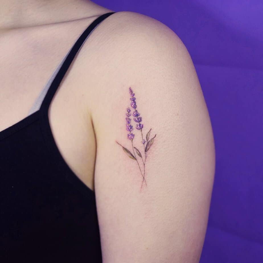 Two simple lavender stems on the upper arm (sweet pair)