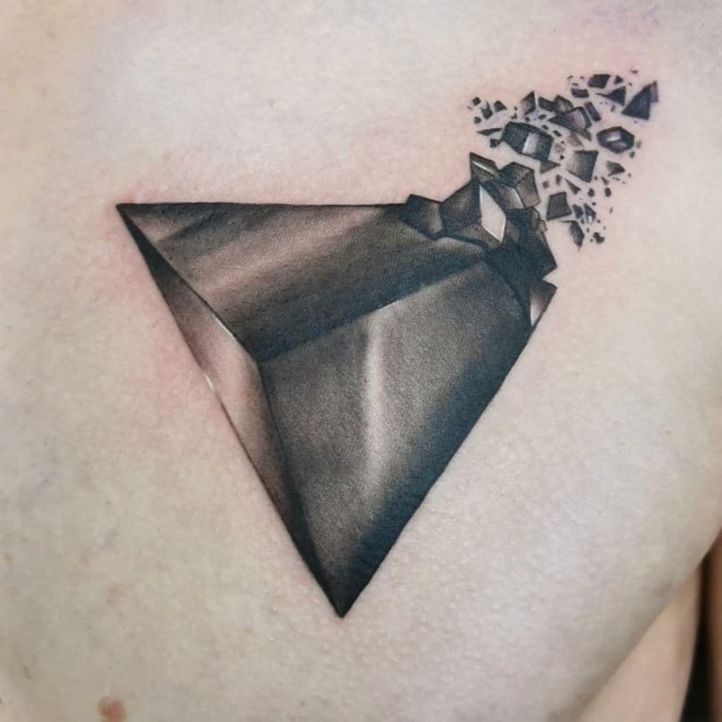 This one looks like the pyramid is bursting into pieces — dramatic, symbolic, and visually intense. The shading gives it a 3D feel so it’s almost like the stone is flying off your skin. If you’re into transformation themes and dramatic visuals, this will stop people mid-scroll.