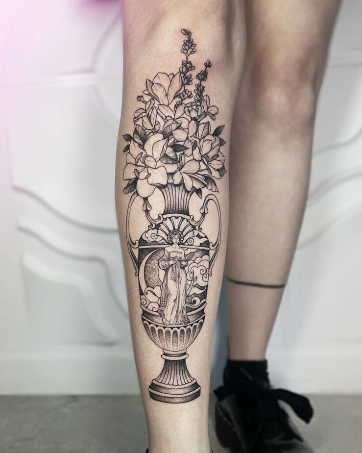 I didn’t know I needed a vase tattoo until now. A Grecian vase is refined and artful, and it translates surprisingly well into skin art.