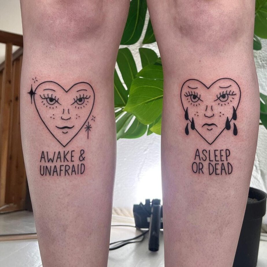 Skulls are classic symbols of mortality and living fully. Placed on the shin, they make a bold statement that’s as thoughtful as it is striking.
