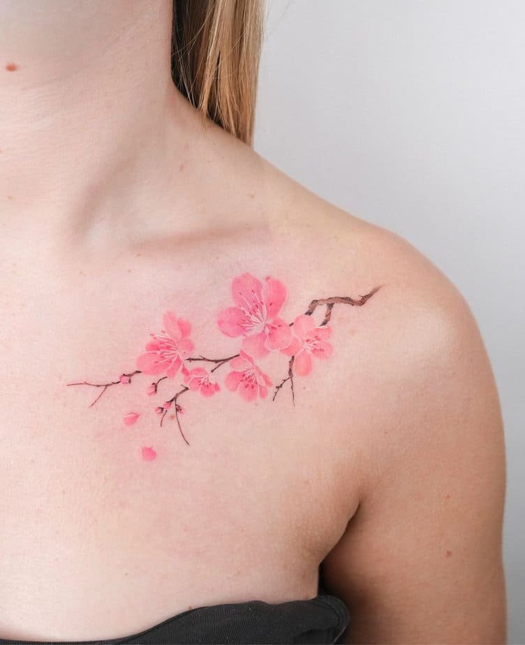 This simple collarbone wildflower is delicate and feminine, but the placement gives it a kind of confident edge. It’s a subtle accent that still says a lot: strength in quiet beauty, and a timeless elegance that won’t ever feel dated.