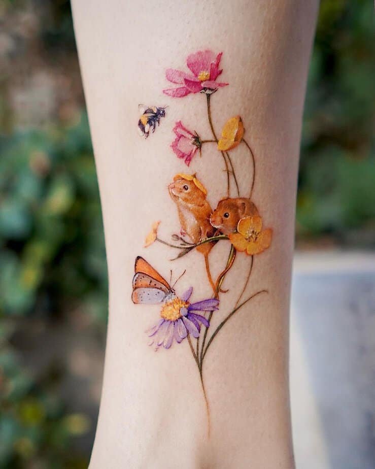 Okay, first up: this forearm bouquet is bursting with life and color, and honestly? It feels like a tiny rebellion against anything that tries to box you in. The blooms are vibrant and loud, but in that effortless way that says, “I’m here, I’m mine.” It’s the kind of tattoo that nudges you to celebrate your individuality every time you look at it — a little reminder that living authentically is worth it.